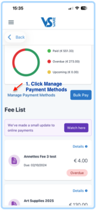 This guide explains how to add, update, or remove your saved payment methods when paying school fees through VSware.